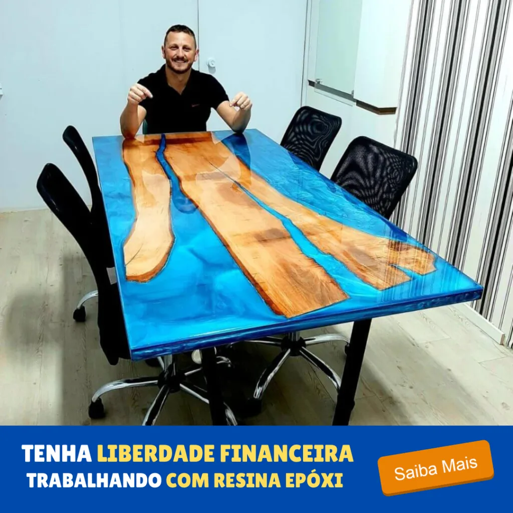 A técnica river table não é difícil, mas é trabalhosa. Requer algum conhecimento e bastante cuidado, sobretudo na aplicação e na medição referente a quantidade de resina para madeira que será usada para a formação do rio.